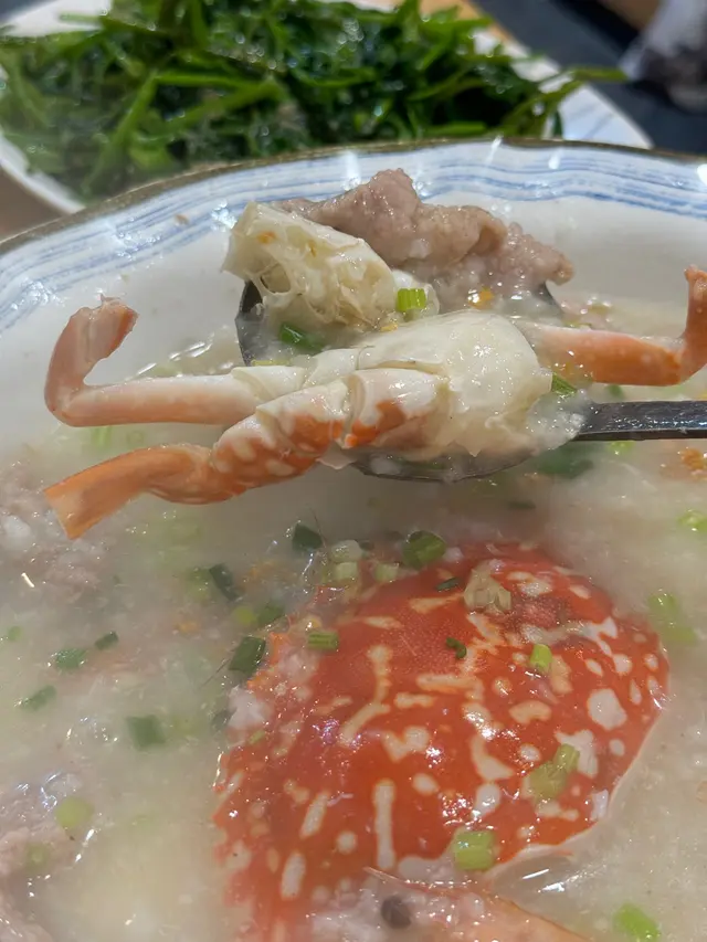 潮州鮮蟹粥係呢間舖頭嘅必點菜式,先係煮落啲速度,無論係粥底定係鮮蟹都非常美味,而粥的粘稠度恰到好處,米粒與蟹肉的鮮味相互交融,口感滑順。