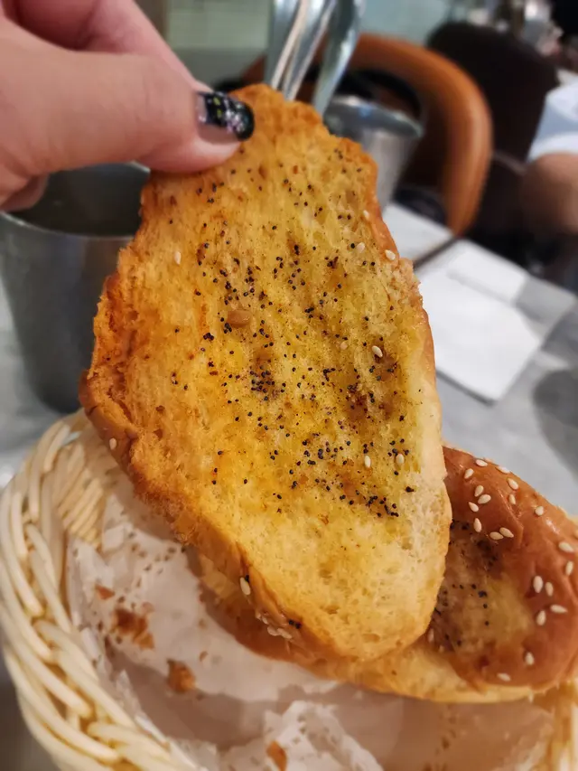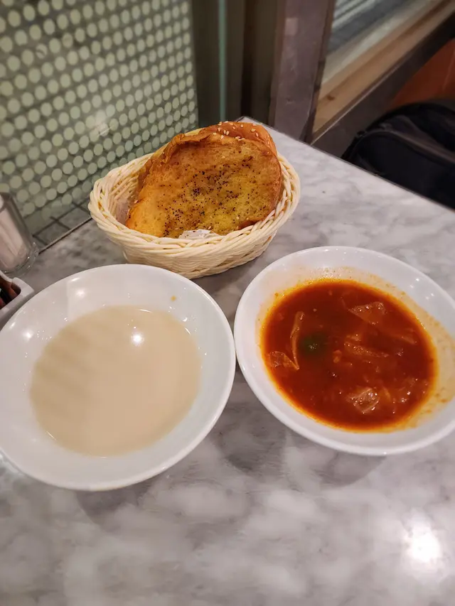 套餐包嘅羅宋湯材料豐富,酸甜開胃;忌廉湯香滑濃郁。配上烘得金香脆口嘅特大蒜蓉包,蒜香滿溢,絕對係完美開始!🍞