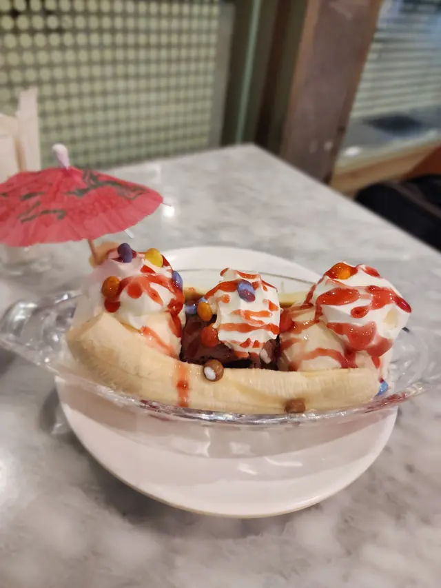 甜品香蕉船絕對係高潮!雲呢拿、士多啤梨、朱古力三色雪糕,配上香蕉同忌廉,係我細個最鍾意食嘅味道!🍌