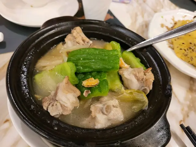 再點涼瓜炆排骨煲,諗住會係好似雞煲炒香嘅菜式,但原來係清湯煲…