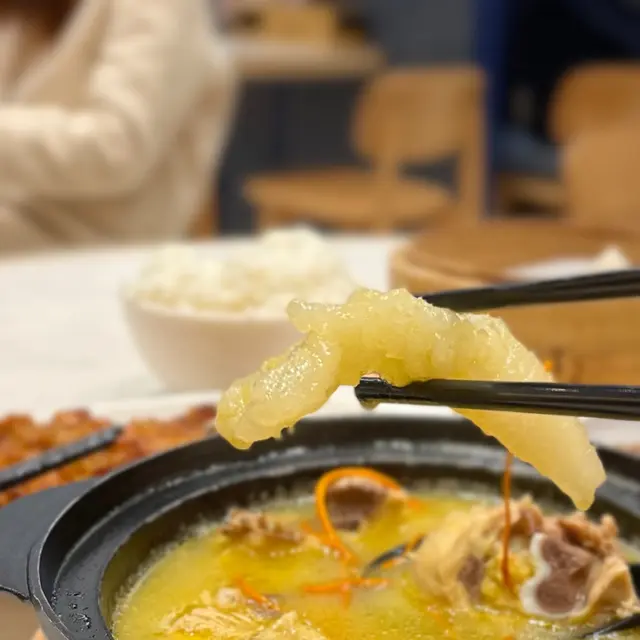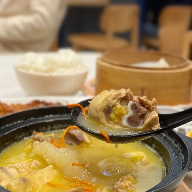鮮嫩雞肉加雞湯加花膠和蟲草花