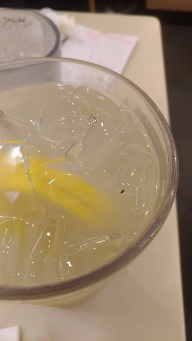 叫左杯凍檸水,有隻野飛左入去,拿拿林叫阿姐拎過杯。