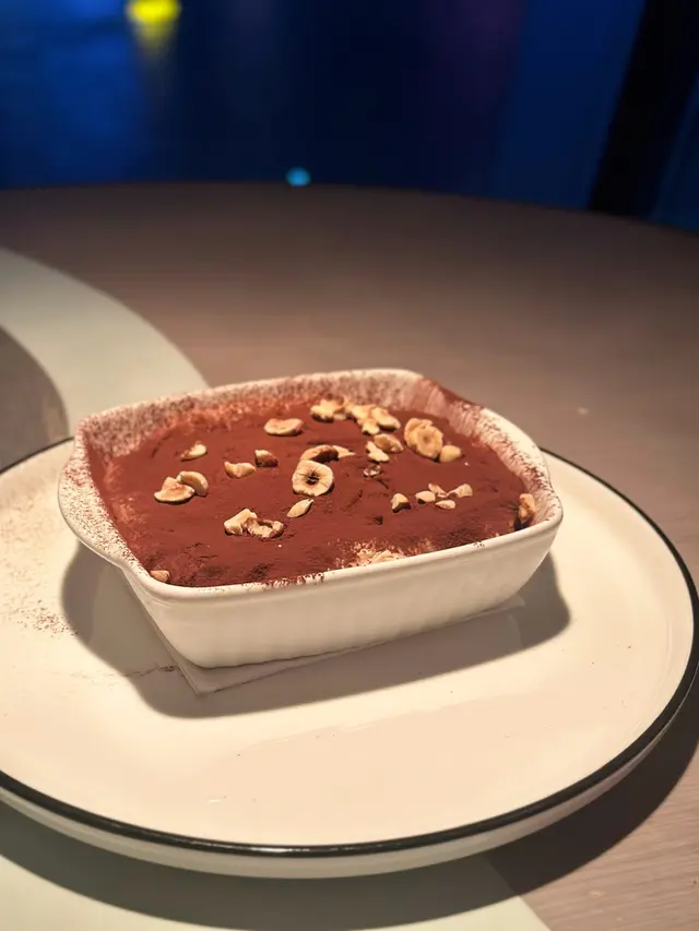 侍應推着甜品車在桌邊即席製作,視覺儀式感十足。份量驚人,手指餅完全吸滿咖啡酒,但略為過軟。Cream 質地輕盈不膩,帶上淡淡榛子香,整體依然討喜。