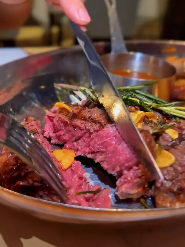 牛扒值得俾5分👏🏻 生熟程度控制得好好,外層焦香、肉質嫩腍🤤 仲可以揀配蒜頭或者海鹽一齊食~個人覺得就咁食比點汁更好味😉