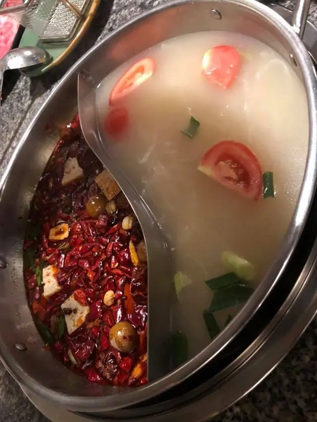 不過這裡就冷氣偏凍同待應比較少,難叫人嚟。我哋叫咗兩個湯底,麻辣湯底配酸菜肉火鍋,麻辣叫了小辣,但沒想到完全冇辣味,幸好都都幾香。酸菜肉就有點失望,因為酸菜肉就似滾水加少少酸菜的味道。