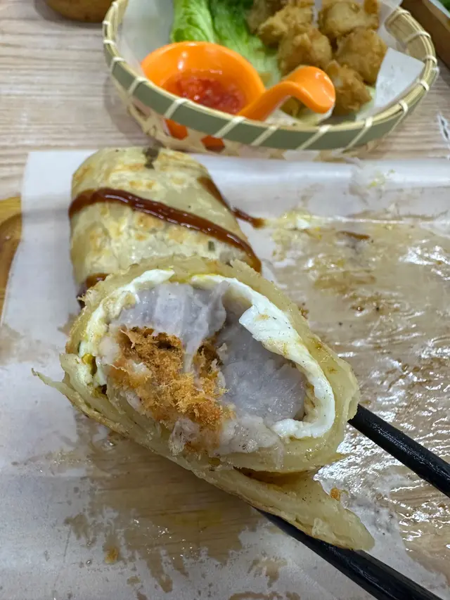 台灣菜的招牌蛋餅,肉鬆及芋泥的份量都滿瀉,芋泥的綿密口感和肉鬆的鹹香相互交錯,又鹹又甜蠻好吃,配上微焦的蛋餅皮很讚~
