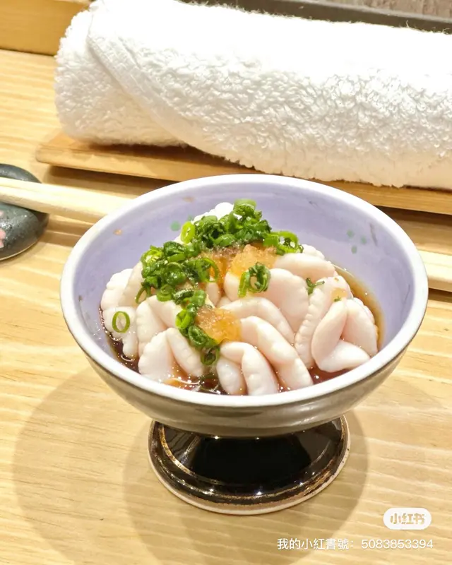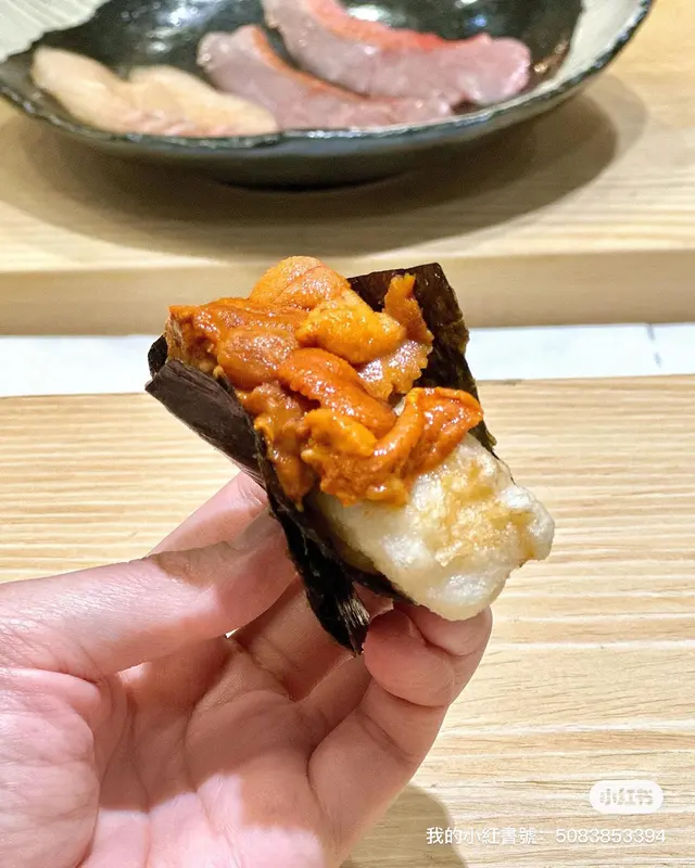 刺身:白子、二座目、帶子天婦羅併赤海膽手卷、燒吞拿魚面珠墩