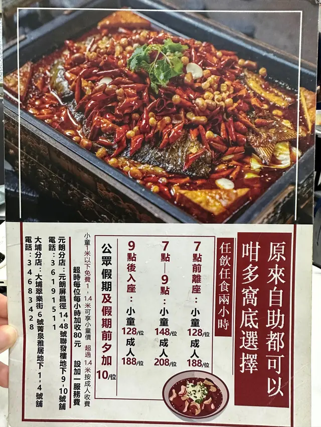 7點前離座或9點後入座 成人$188/小童$128