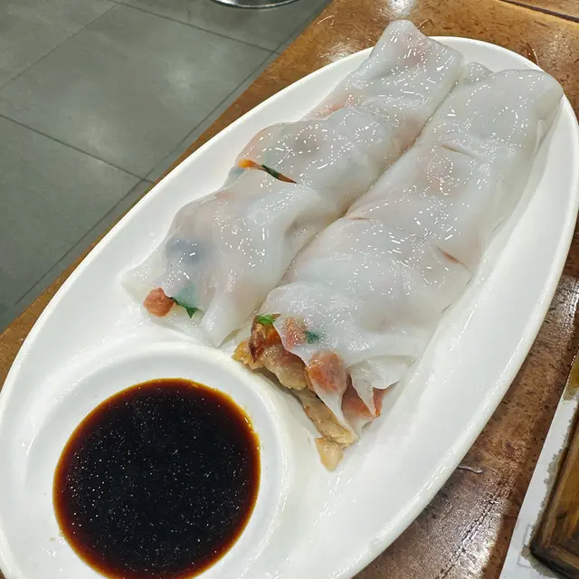 佢用嘅叉燒係半肥瘦叉燒,所以食落去有淡淡嘅油香味👍但係又唔會太油膩,腸粉嘅皮都算薄身嘅👍唔錯