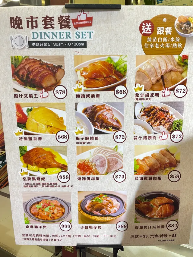最後小編嗌咗個醉雞卷、叉燒同滷水鴨嘅晚市套餐🤪跟餐有得配絲苗白飯或者米線🍜,仲有住家老火湯或者熱飲哦~☕️