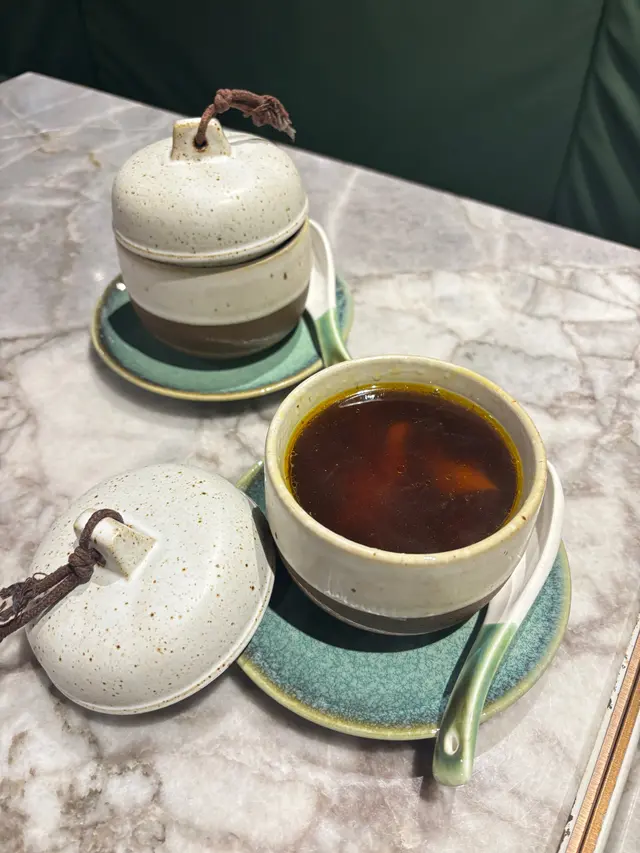 熱騰騰的燉盅,深啡色的湯內有多種材料,