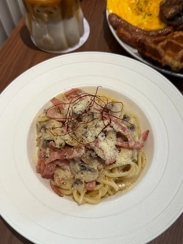 🩶卡邦尼意粉掛滿蛋汁入味,煙腩肉份量好多~