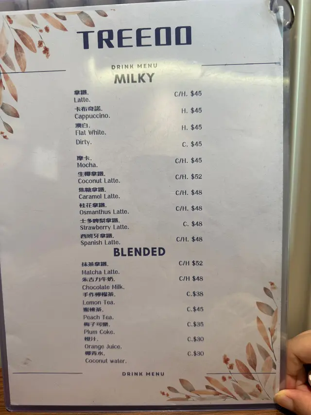 順口,偏nutty,我OK~有啲特色咖啡如pineapple/ orange/ lemon/ coconut Americano、strawberry latte等☝🏻走咗之後先發現原來佢地嘅招牌係Treeoo(開心果朱古力脆脆咖啡)、手沖同牛角包🥹下次~