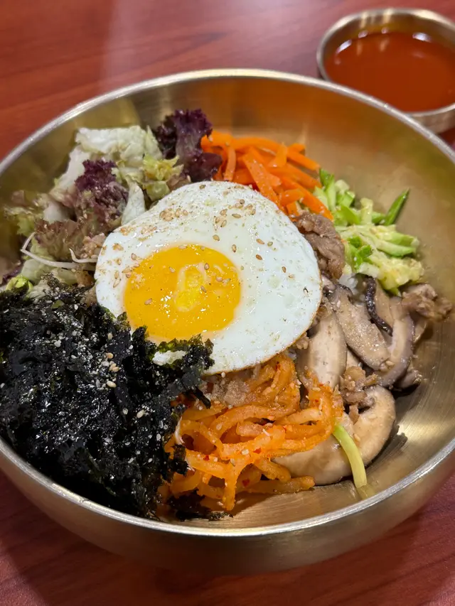 牛肉烤得昋,唔靱,配菜清新,食落層次豐富,好有韓式家常味,有菜有肉啱晒懶人一碗搞掂!鍾意食辣嘅人可以加辣醬食。