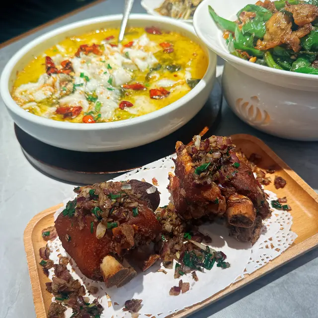 我哋呢另外仲叫咗兩隻豬手,佢嘅皮炸得好脆,而且唔會太油膩,