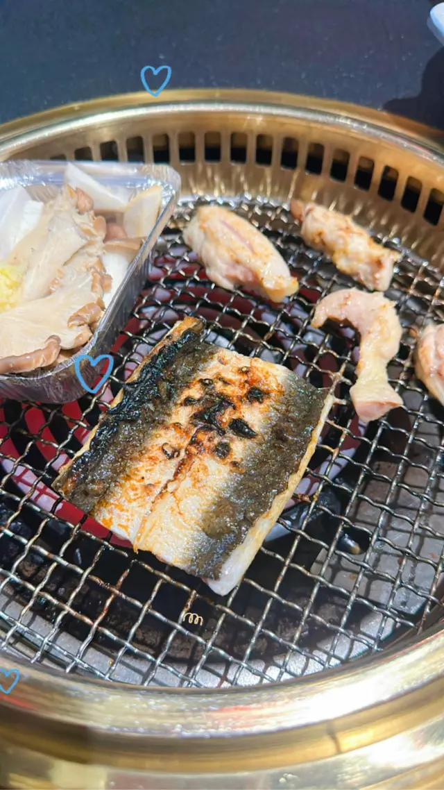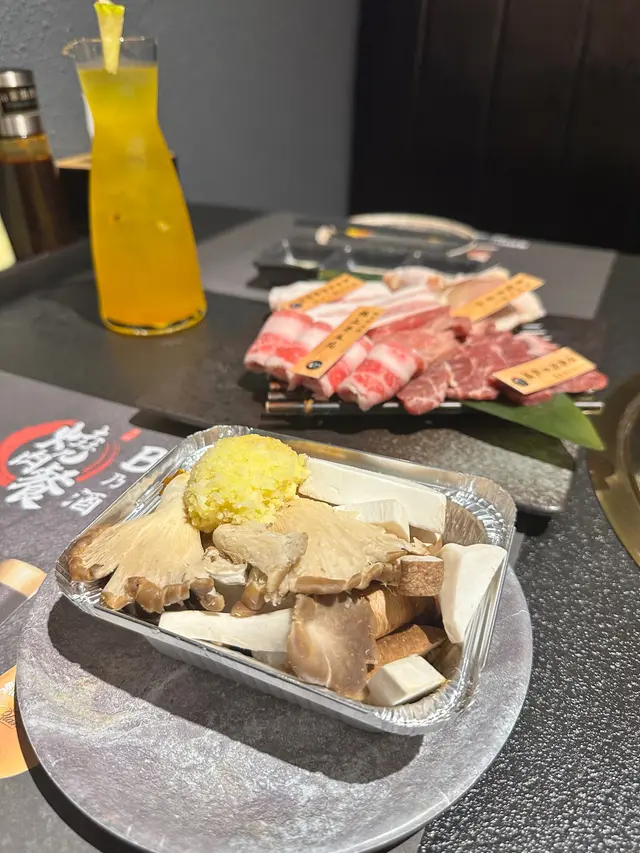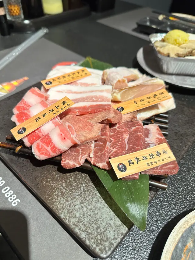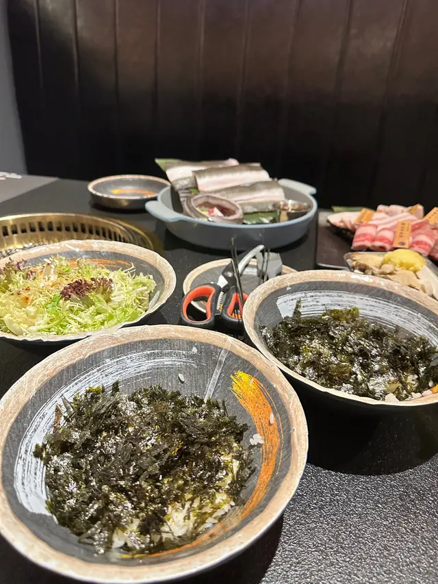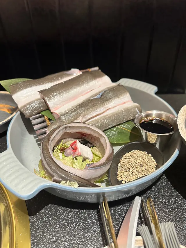 套餐包括:有勁大塊又肥美的白鰻魚之外,仲有一碟肉拼盤(有安格斯牛板腱、厚切牛舌、極上牛五花、黑豚豬腩、薩摩赤雞髀肉)、沙津、蒜
