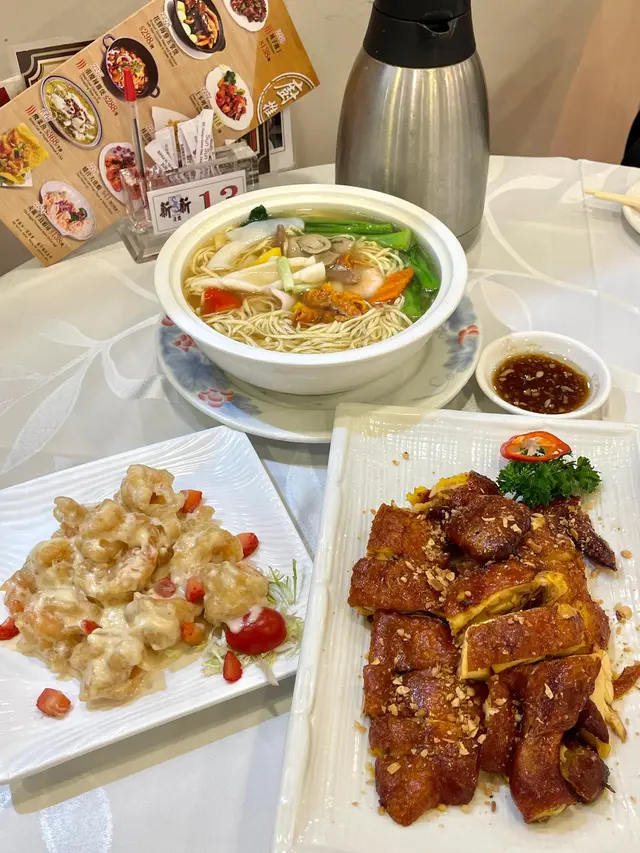 充滿懷舊風味的粵菜酒樓 Sa820等级42025-11-01146 浏览 关注 新新酒樓是佐敦區一間歷史悠久、懷舊風味的粵菜酒樓,主打各類傳統廣東菜和點心。酒樓環境寬敞適合家庭或朋友聚餐。蒜香脆皮燒雞半隻:蒜味香濃,搭配酥脆雞皮和嫩滑多汁的雞肉,層次分明且富有鮮明口感。火龍千島蝦球:蝦球爽口彈牙,外層沾滿酸甜口感的千島醬,整體口感清新且令人回味無窮。海鮮鍋伊麵:海鮮包括蝦、鮮魷、珊瑚蚌等,伊麵鍋融合了海鮮的鮮甜與濃郁的上湯醬汁,麵條吸附滿滿的汁液,味道既鮮美又鮮香,且口感層次豐富,有彈性且富嚼勁。奉送飯後甜品:海帶綠豆沙甜滑中帶有清香和海帶獨特的爽口感。以上食记乃用户个人意见 , 并不代表OpenRice之观点。赞好分享充滿懷舊風味的粵菜酒樓 新新酒樓 https://s.openrice.com/QrLT0pmPV00检举 张贴 评分5味道4环境5服务5卫生5抵食用餐途径堂食