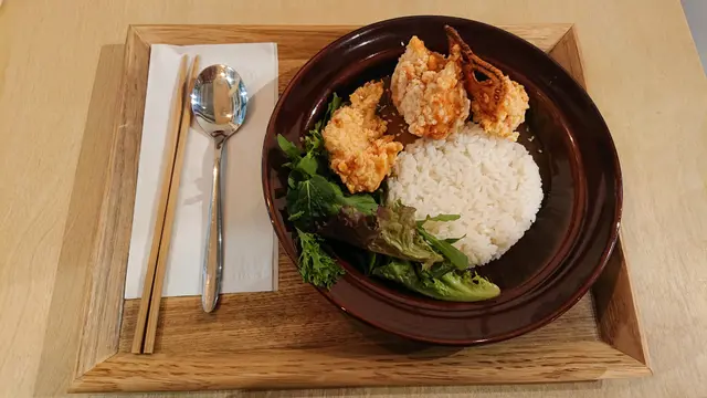 炸雞和咖喱都是日本的家常菜,Mealmeal的炸雞炸得脆脆的,不會乾身,咖喱味道也很好,另有沙律菜在旁邊增添新鮮感。