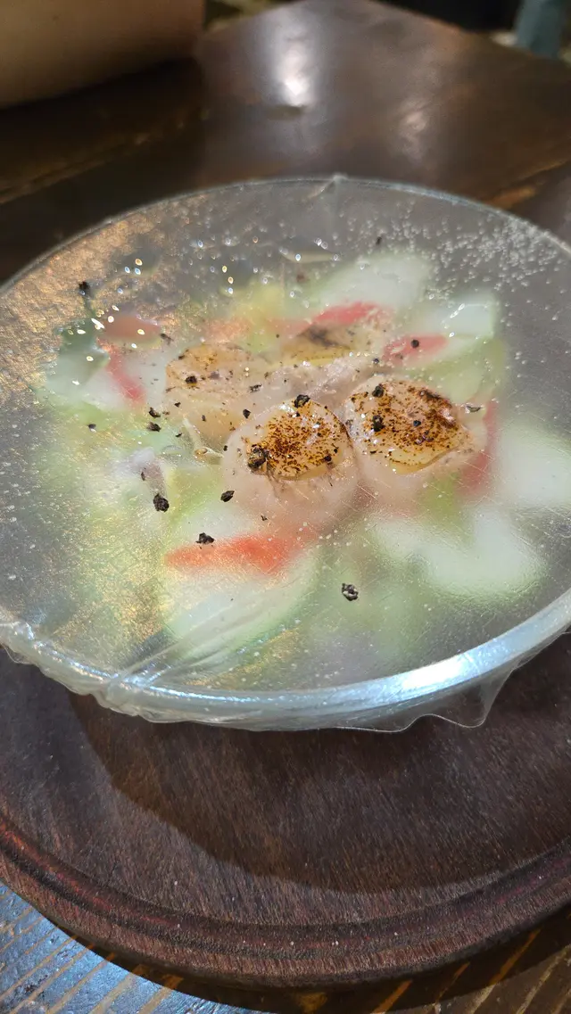 打開煙韌米紙表層,炙燒的帶子搭配脆爽蘋果片和輕盈沙律菜,酸酸甜甜好開胃,健康又不失風味,每一口都讓人回味濃濃煙熏味