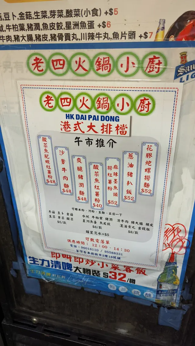 火鍋。呢個熟食中心逾三四十年歷史,對比現在新式的市政綜合大樓更加具香港特色,入到場有種兒時去大排檔的感覺,幫襯的食客都係老街坊,同老闆