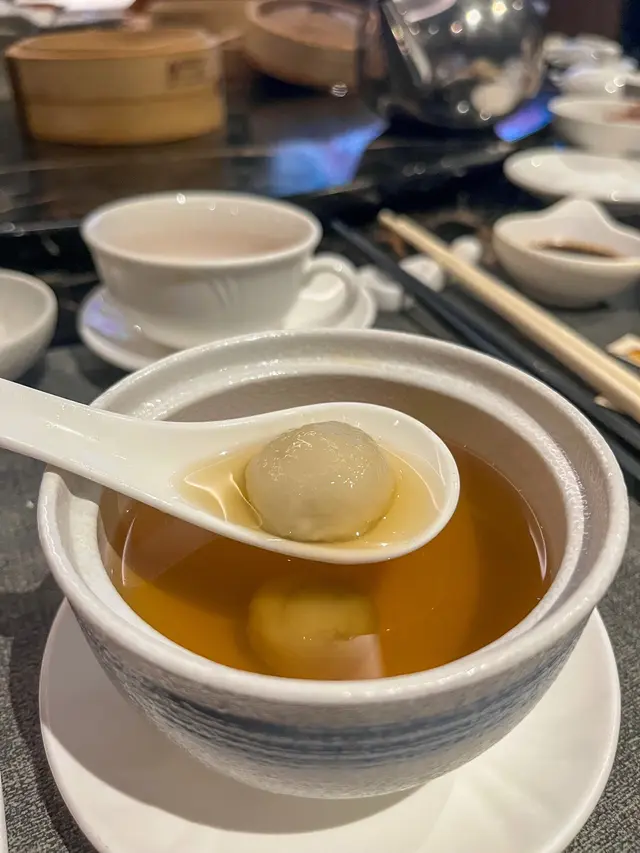 吃完大閘蟹,當然要吃碗薑茶驅寒暖胃,薑茶好香好有薑味,配上細細粒的芝麻湯圓,如果可以多點餡會更好,薑茶味微辣地,飲完整個人好舒服,好暖胃!☺️
