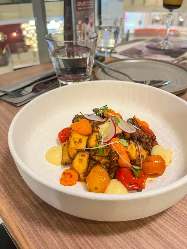 🐙八爪魚口感豐富,彈牙腍軟,配菜還有有蕃茄仔🍅、橄欖🫒及薯仔🥔,色彩豐富🌈,用上紅椒堅果醬Romesco及蛋黃醬,味道甜甜辣辣,為八爪魚提鮮,非常開胃!😙