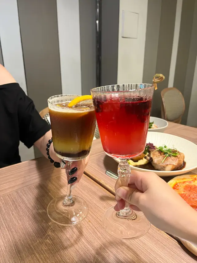 用上氈洒、洛神花糖漿、檸檬汁、梳打水調配,味道甜甜酸酸,清新又解渴!😆