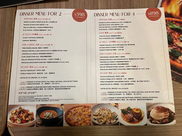 這個Dinner Menu足夠兩人份量,可以自選🥗前菜、🍕 8吋薄餅、主菜、🍰甜品,及☕️餐飲,我們選了以下的菜式: