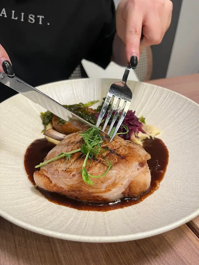 慢煮豬鞍煎到剛剛好,外表焦香,肉質軟嫩,還緊緊鎖住肉汁🤤,廚師慢煮溫度應該控制得非常好!👍🏻 配上焦糖蘋果及紅酒燴椰菜絲,可以減低油膩感,薯蓉亦香滑,帶有牛油香,整體好有驚喜!🤩