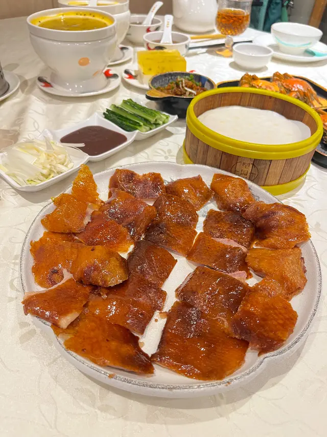 🦆還有片皮鴨,想不到店員即場把一整隻鴨分切片給客人吃,皮烤得非常香脆,肥膏不算多,把配料蔥絲、青瓜絲、甜麵醬用薄餅皮包裹起來食用,減低油膩感!😝👍🏻