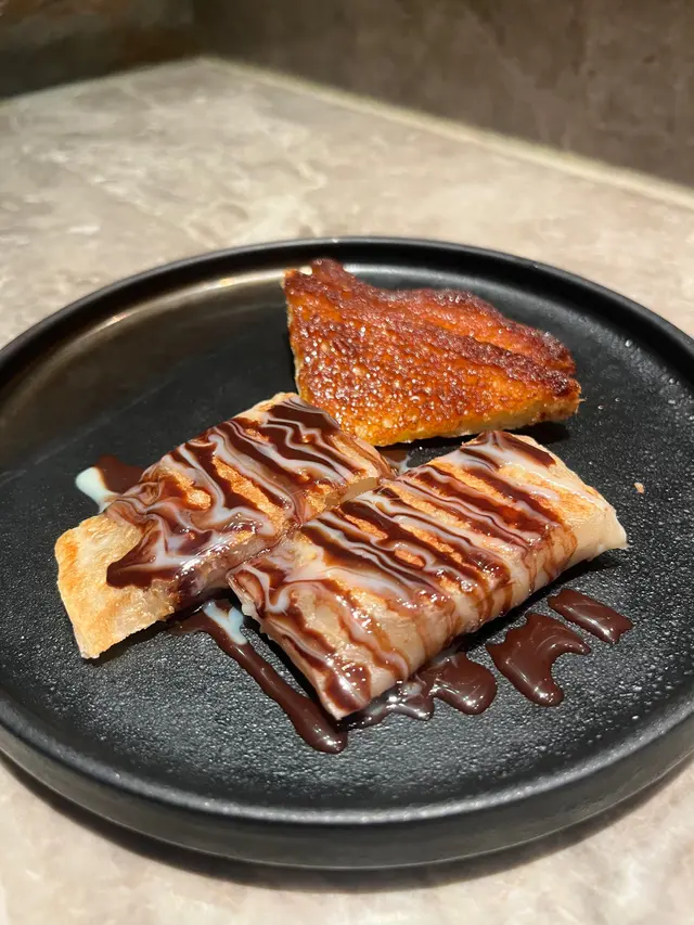 我們追加了一個朱古力香蕉𝐩𝐚𝐧𝐜𝐚𝐤𝐞+焦糖多士,好好味,為一餐畫上完美的句號!🤤