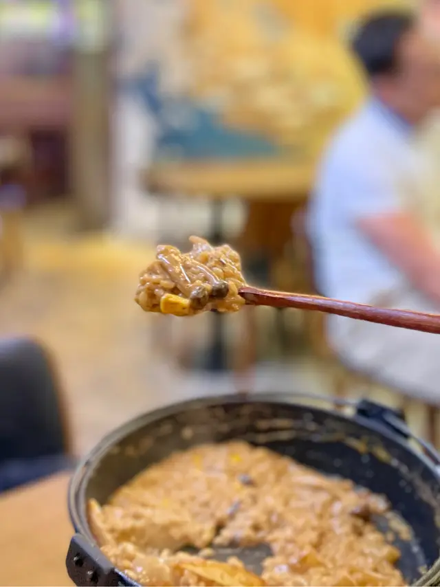 煮完肉之後就汁煮日式蔬菜🧅有菇、菜、豆腐等等,索晒精華嘅素菜好入味。最後剪碎洋蔥🧅加入黑松露Risotto,再用壽喜燒汁燉飯,勁creamy,黑松露味道同壽喜燒汁好夾,入口熱辣辣。