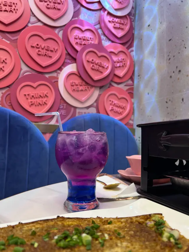 我自己呢最鍾意就係佢個杯打卡飲品-藍金橘梳打💜💙藍藍紫紫咁樣真係好夢幻啊,味道有少少酸酸甜甜嘅感覺,我覺得拎嚟消暑就啱晒啦
