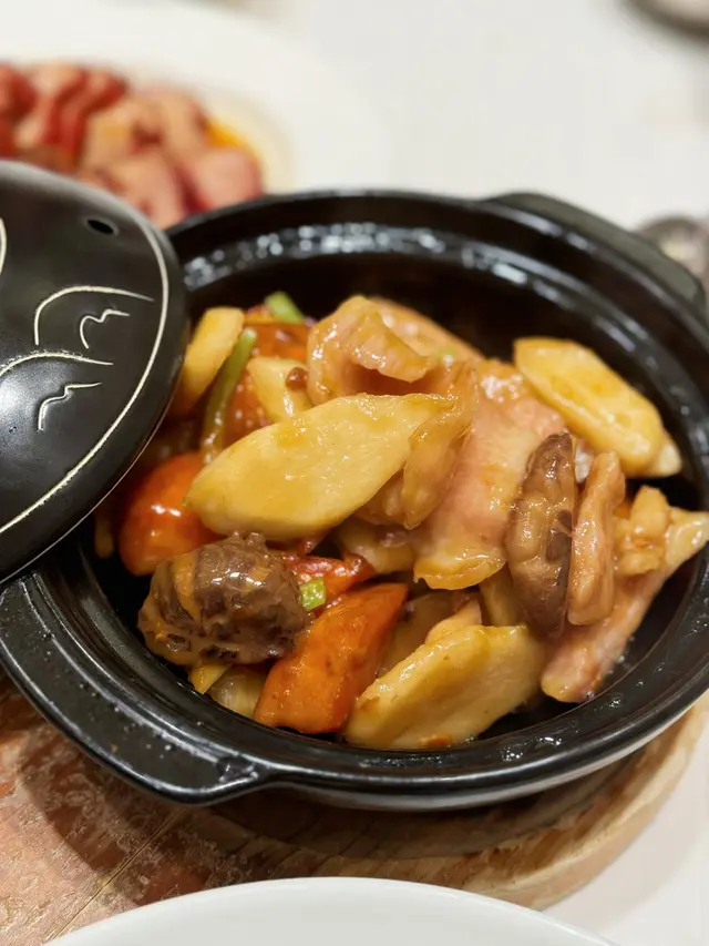 惹味煲仔菜~以健脾養胃鮮淮山、益氣補虛蕃薯加上以黃豆醬炆焗豬頸肉,打開煲蓋超級香,好啱滋潤返皮膚乾燥