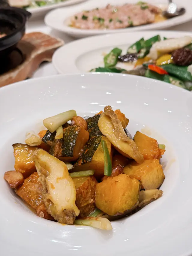 香軟嘅南瓜同鮑魚炆煮,食落特別香甜,原來用咗本地農場種植嘅有機南瓜,富含鉀離子,可以穩定血壓同低GI,仔仔都會搶著吃!