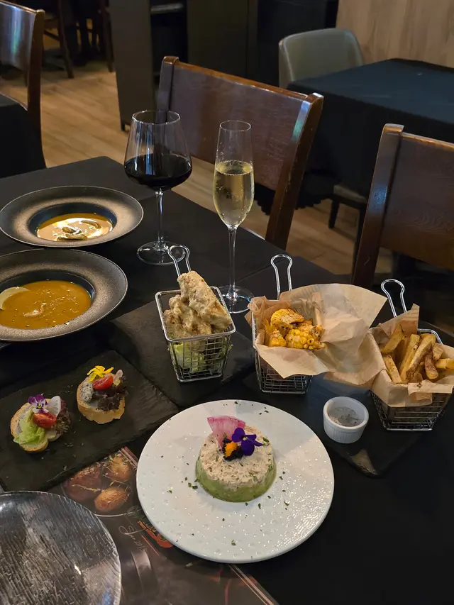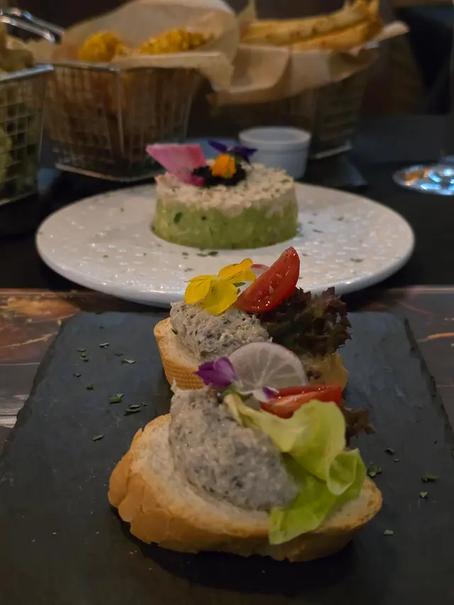 前菜可五選一,比一般餐廳多。我們點了黑松露蟹肉多士與煙燻蟹肉牛油果他他。多士上的蟹肉與松露醬搭配得宜;牛油果他他口感清爽,煙燻蟹肉份量慷慨。