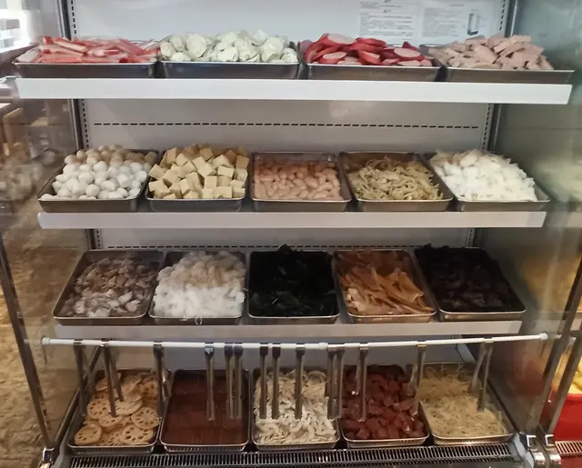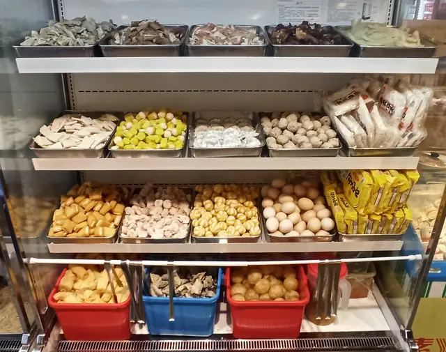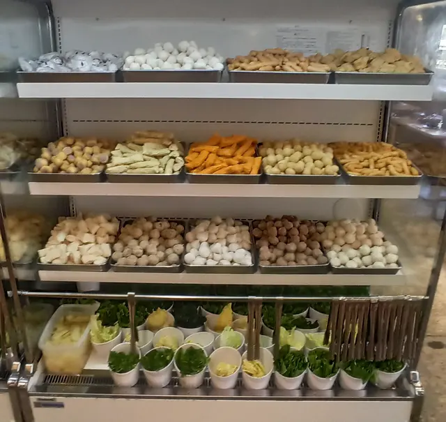 火鍋配料基本嘅丸、腸、菜、菇、麵、等等。