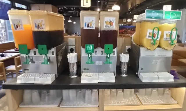 飲料有不少選擇,罐裝汽水啤酒、盒裝荳奶、盒裝茶、即沖咖啡機、即斟飲料、沙冰。