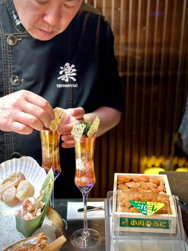 作為鐵板燒愛好者,我選了這間在pocket list已久的「樂鐵板燒」。這間屹立佐敦8年的小店,以海膽主題的豪華廚師發辦聞名。
