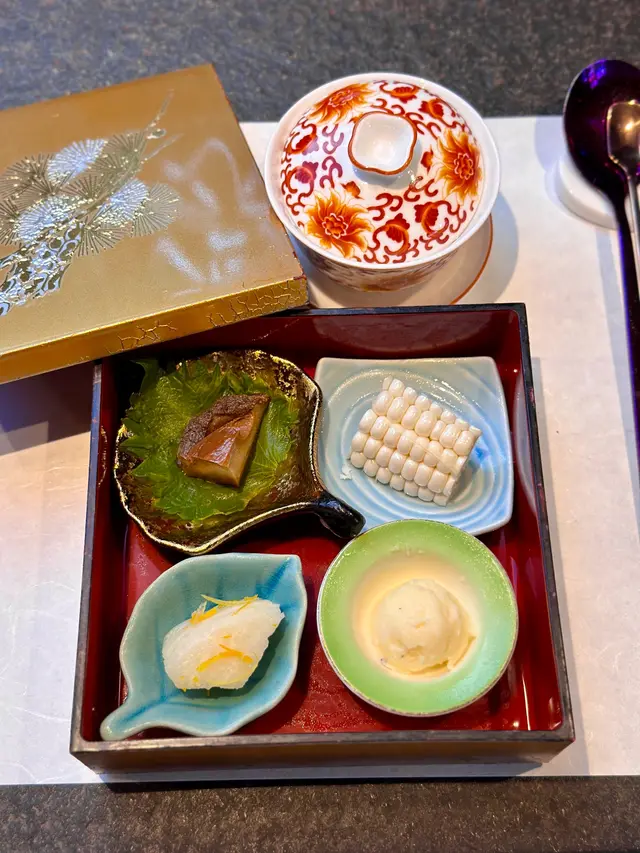 磯煮鮑魚溫潤入味,北海道白粟米清甜多汁,大根柚子漬爽口清新,薯仔沙律綿密細膩;味蕾已被打開。