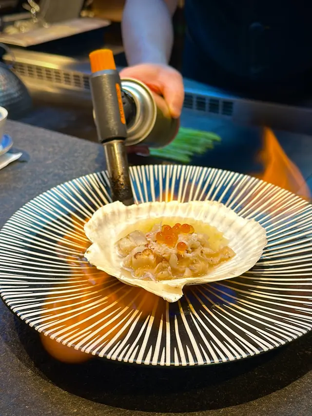 以傳統的炙燒技法讓糖分與帆立貝在高溫下鎖住糖分與鮮味,鮮嫩中帶酒香與牛油香,連一滴湯汁都不捨得剩下!