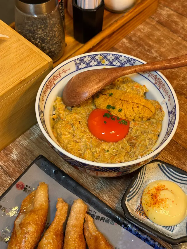 主食推薦🦀蟹黃海膽月見飯$168,海膽鮮甜蟹黃濃郁,撈埋蛋黃超滿足!🥟雞皮餃子$48脆口惹味,邪惡感滿滿~