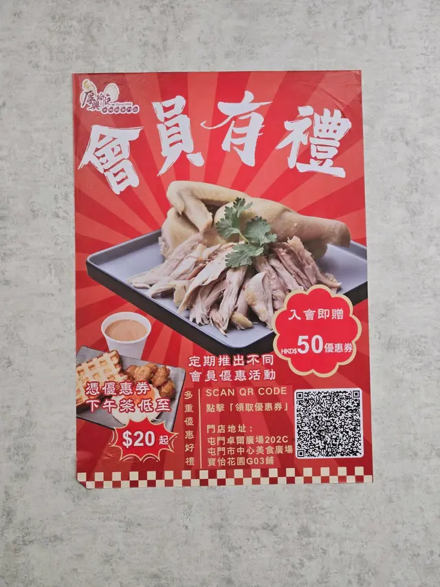 值得一提的是,加入會員可享有多種優惠,例如用優惠券只需$20就能享受一個下午茶,真是划算!如果你也喜歡手撕雞,這裡絕對是你不能錯過的美食地點。🎉