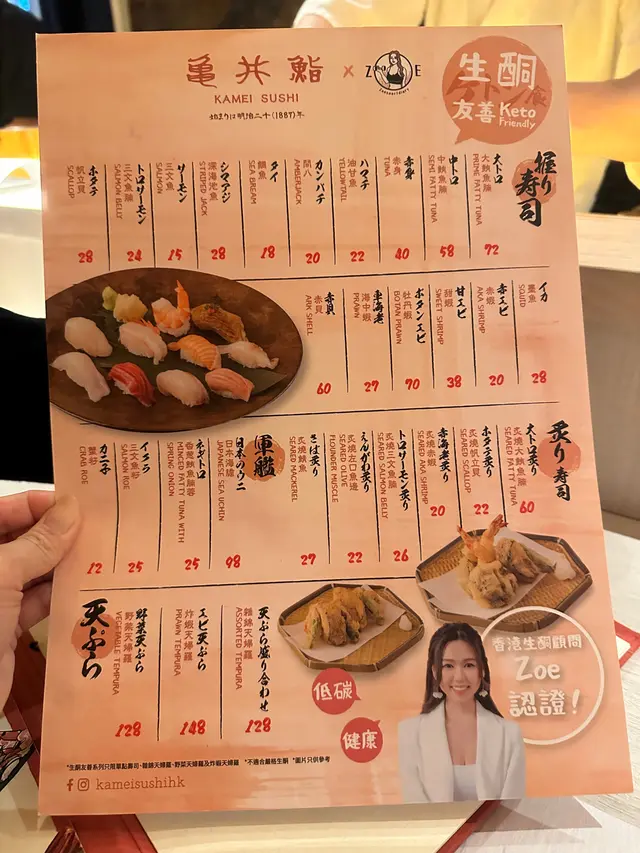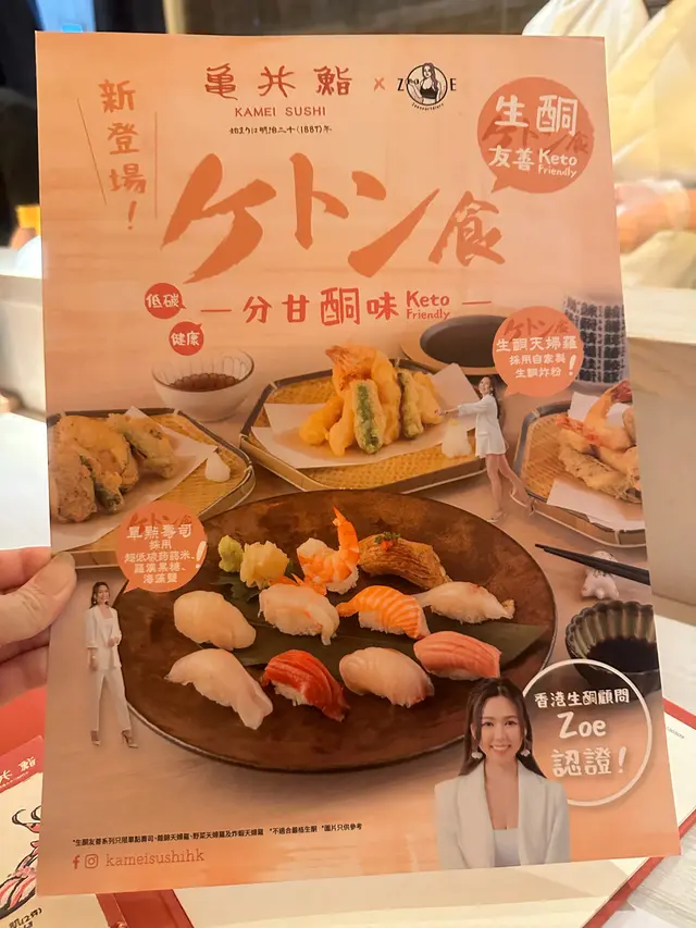 餐廳採用超低碳蒟蒻米、羅漢果糖、海藻鹽製作生酮壽司,低糖又健康,味道跟壽司米好接近。由於蒟蒻米粘性不及壽司米,師傅手握壽司也要特別用心。雖然成本比普通壽司成本高,但餐廳沒有將成本轉介比消費者,值得一讚。