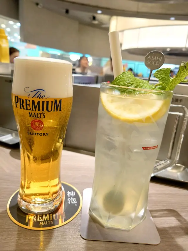 Suntory啤酒及及Asahi香甜檸檬有氣果酒:酒類做緊promo,6點前落單,同一飲品第二杯做半價。老公話Suntory啤酒斟得有技巧,泡沫剛剛好無倒瀉。Asahi香甜檸檬有氣果酒果汁味濃,檸檬味清新,甜甜地,易入口。