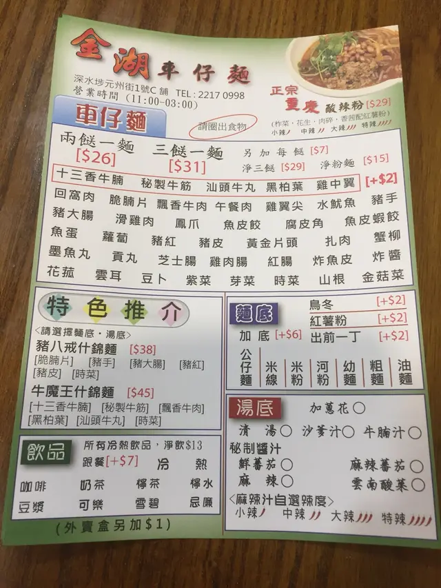 全部用水白恰,好在有個汁 Maggie and Kitty等级42019-03-082K 浏览 关注 又無約人食反,又吳知食乜好,就求其搵D嘢食,唸吳到食乜時候,最好就係食車仔麵😂因為可以剩係食餸都得😀😀又不會太鲍叫左八款餸:1-水魷魚——爽口,不過無味😅2-🐟片頭—-咬落彈牙有口感3-墨魚丸——一般4-🐷大腸—-鹵水味吳夠,(亦無🐷壓味)ok5-蘿蔔———炆得夠(林)又夠甜6🐔翼尖——鹵水味吳夠7冬菇———-味道ok8-脆腩肉——呢個脆腩肉,原來有D似燒肉,味道都可以,咬落不會太硬不過因為食物大多白恰,鹵水食物又吳夠味,好在有個麻辣汁配合就好D😅21以上食记乃用户个人意见 , 并不代表OpenRice之观点。赞好分享全部用水白恰,好在有個汁 金湖車仔麵 https://s.openrice.com/QrLT0PBqo00检举 张贴 评分3味道2环境2服务3卫生4抵食用餐途径堂食