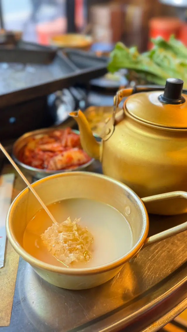 咬一啖蜂巢再飲 口味比較甜啲 米酒味就無咁明顯!