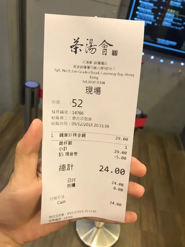 其實同「佢」係同一個集團,味道都似 sataysauce等级42018-12-18350 浏览 关注 雖然我唔係珍珠奶茶fans,不過我都會留意下啲媒體報導,之前就去試左「春水堂」,點知去佢個官網睇,原來「茶湯會」都係同一集團,我真係有眼不識泰山,當然要黎試下佢,加上之前行過銅鑼灣,有派coupon,就睇下係咪同「春水堂」差唔多。 飲品店內外其實周圍都有分店,飲品就鎖定試佢既Top1! 觀音珍珠拿鐵 $29觀音珍珠拿鐵$291觀音珍珠拿鐵$29用左優惠卷就$24,價錢可以接受,以為傳統啲既珍奶店都會唔用透明杯,但呢到有用,本身杯野其實係漸變色,不過唔記得左影就搖左。飲落茶味幾出,不過就唔算好有鐵觀音味,至於珍珠都係同「春水堂」一樣係細珍珠,兩者個味又真係幾似,應該都唔係用鮮奶,但奶味都唔算假,而且夠奶味,都整體都唔錯。以上食记乃用户个人意见 , 并不代表OpenRice之观点。赞好分享其實同「佢」係同一個集團,味道都似 茶湯會 (利園山道) https://s.openrice.com/QrLT04ven00检举 张贴 评分4味道3环境4服务4卫生4抵食等候时间3 分钟 (堂食)人均消费$29
