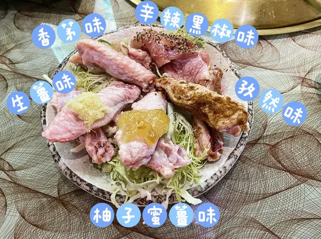 雞翼有5款口味分別是孜然味、辛辣黑椒味、香茅味、生薑味、柚子蜜薑味,個人比較喜歡柚子酸酸甜甜很開胃。