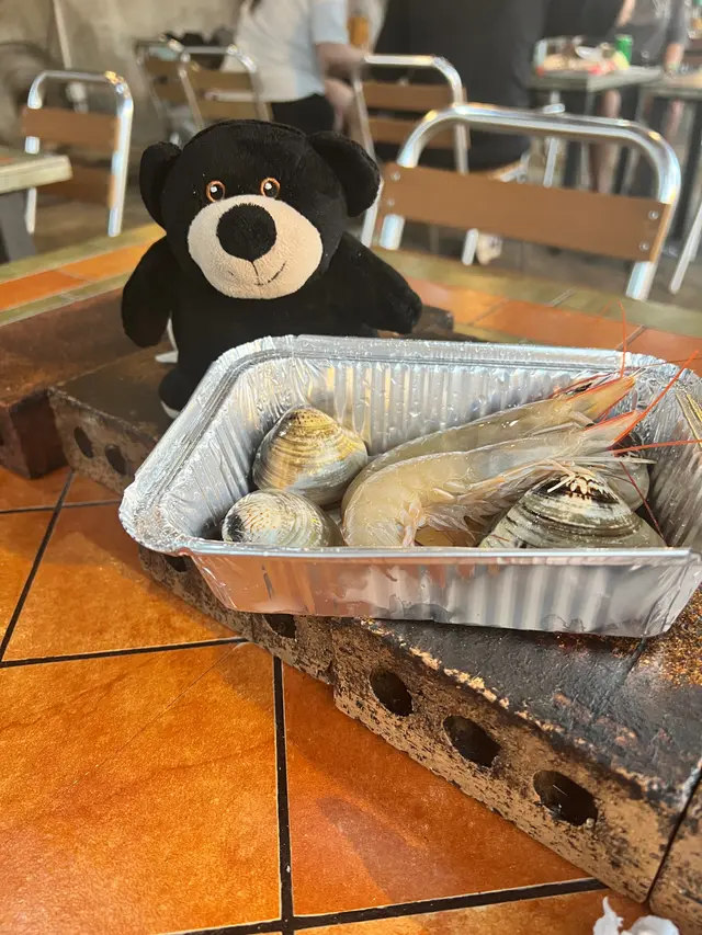 職員將蝦🦐及蜆放在錫紙兜內,需要自己清洗一下